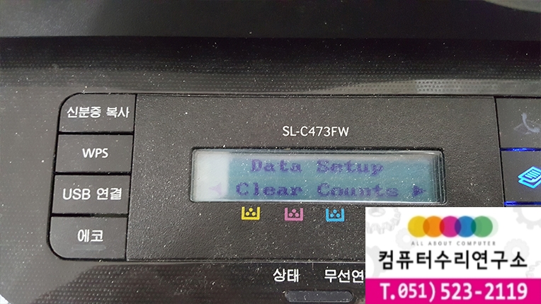 교체완료를 하였고 프린터 초기화 설정을 진행해주었습니다.