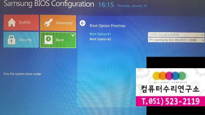 삼성 바이오스에서 부팅 경로를 설정을 해줘야 하는