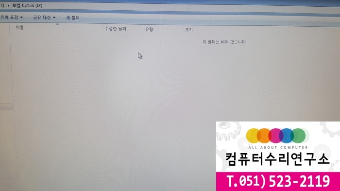 복사한 데이터가 제대로 저장되지 않아서 데이터가 없었고, 그 사실을 알고 바로 저희센터를 찾아주셨습니다.
