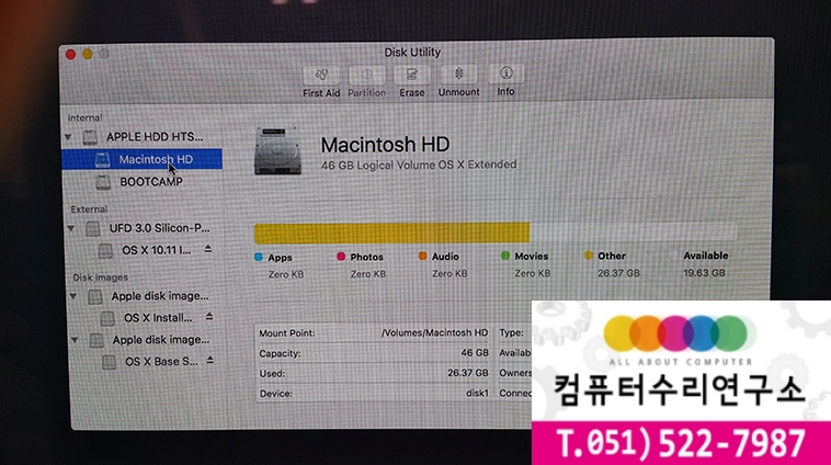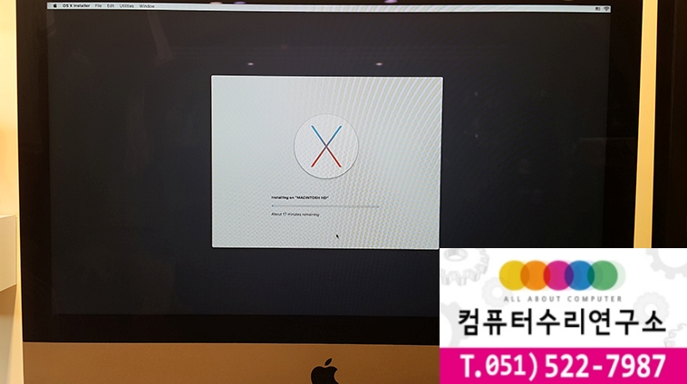 고객님께 아이맥os를 재설치 하기로 상담을 통하여 결정하고 작업을 진행하였습니다.