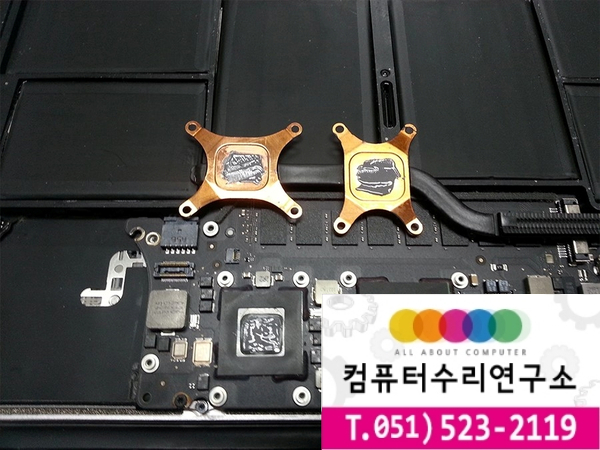 그리고 맥북 내부온도를 결정하는 가장큰 부품인 쿨러가 문제였습니다.