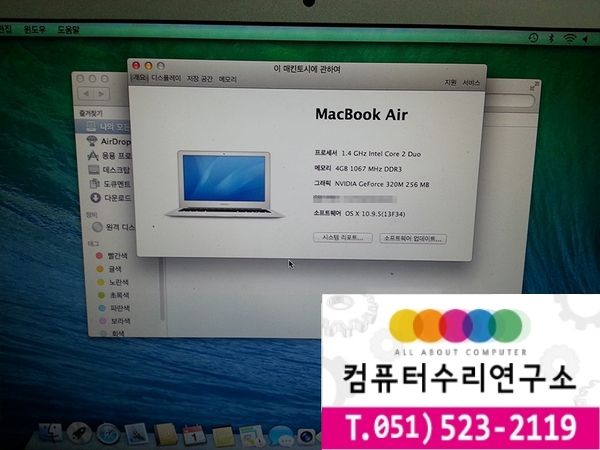 오늘은 진구 전포동에서 거주하시는 고객님께서 맥북에어를 들고 저희센터를 찾아주셨습니다.