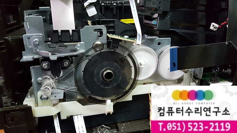 프린터를 분해하면서 용지걸림 문제가 발생할 수 있는 부품들을 집중적으로 확인하였습니다.