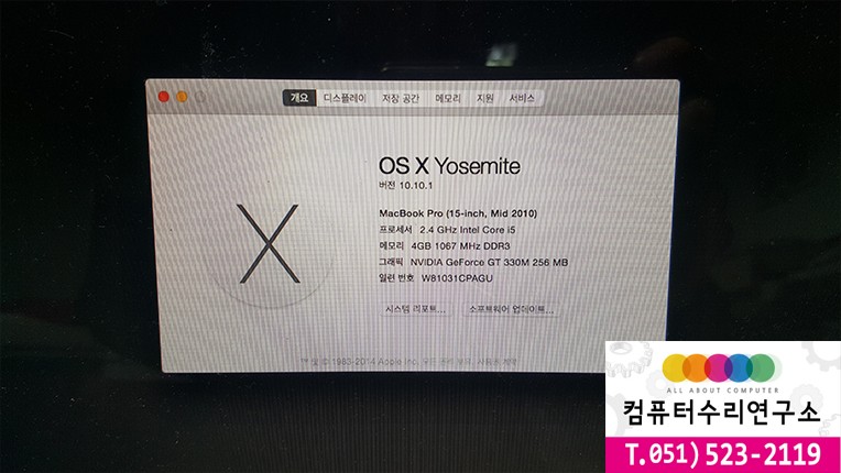 부산시 부산진구 부암동 협성피닉스타운 느려진 맥북 부품교체 진행 본문