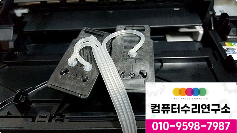 잉크탱크에 잉크를 보충해주고 호스와 커넥트를 프린터에 연결을 해주었습니다.