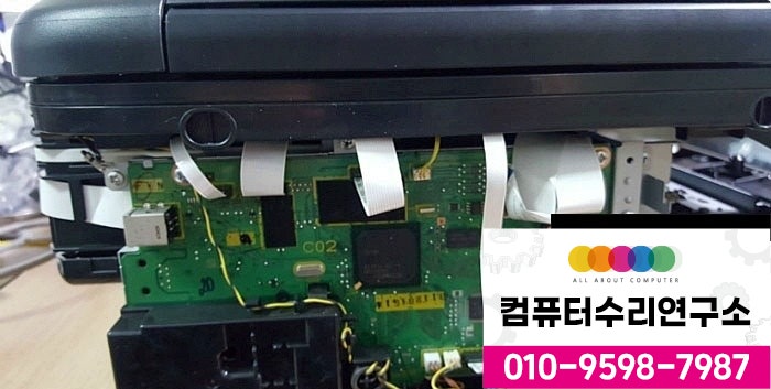 프린터를 센터로 입고한 후, 내부 부품을 정밀하게 점검하며 수리를 진행했습니다.