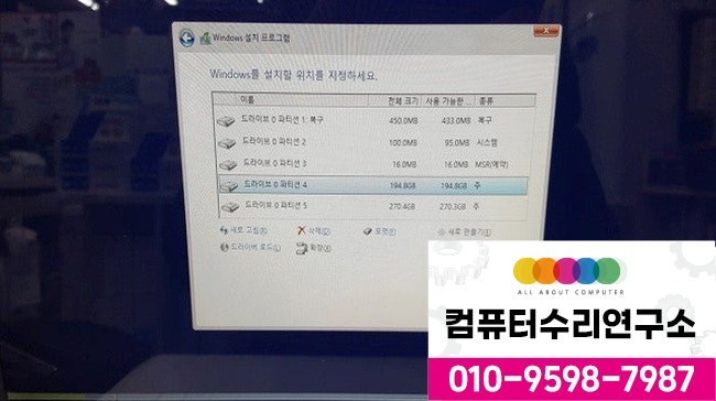 백업작업은 건너뛰고 기존의 손상된 파티션은 포맷하고, 최신 버전의 윈도우를 새로 설치했습니다.