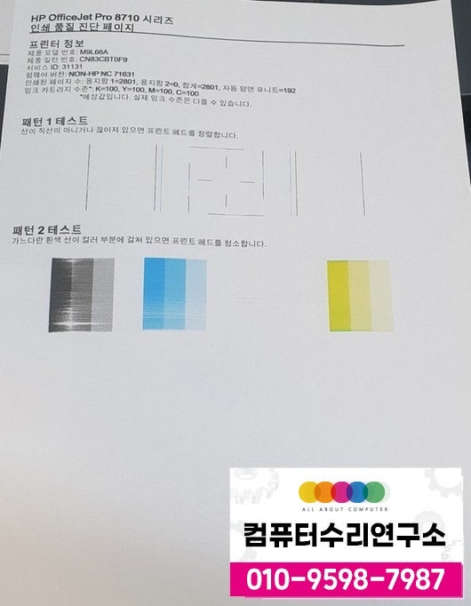 테스트 결과 잉크 공급이 정상적으로 복구되어 인쇄 품질도 선명하게 재현되었습니다.